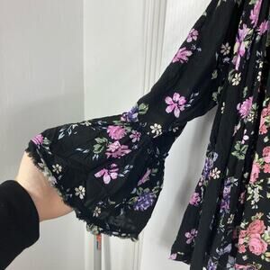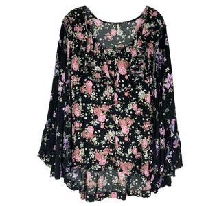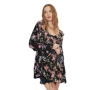NWOT FREE PEOPLE Tunic S Loretta Printed Floral Blouse in Black Combo