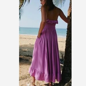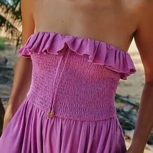NWOT FREE PEOPLE WOMENS LUSH LIFE LINEN BLEND OPERA MAUVE DRESS STRAPLESS