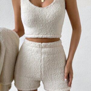 FURRY FLEECE CROP TOP TANK AND SHORTS SLEEPWEAR SET