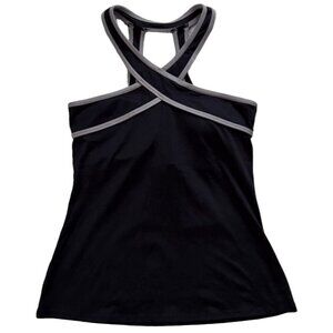 NWOT Fabletics Chicago Top Tank Black Fog/Gray Womens XS Halter Built in Bra