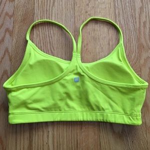 Brand new, never worn sports bra. No tags because I got excited and took them off before I tried it on, lol. Brand new, no flaws! The color is a really great citron color. Size is SM, but I'd say it's more like an XS maybe. Sorry, no trades and no PayPal 🙅
