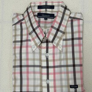 NWOT Faconnable Men's 100% Cotton Button Down Checkered Long Sleeve Shirt - XL