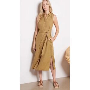 NWOT Faherty | Linen Laguna Sleeveless Midi Shirt Dress in Dull Gold, XXS $178
