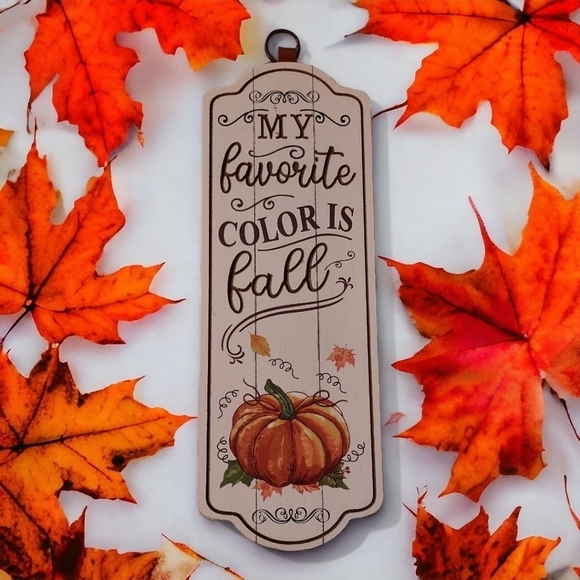 NWOT wall sign with "fall is my favorite color" written on it. Has a leather loop for hanging and a more rustic feel.
