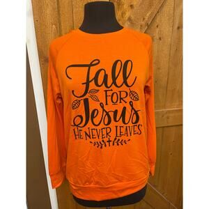 NWOT "Fall for Jesus" Shirt Women's Medium Orange Autumn Thanksgiving