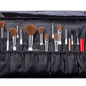 Keep your makeup organized and ready-to-use with the stylish Globetrotter makeup case! From Fancii. White with black and rose gold details. Fits over the handle of your suitcase!