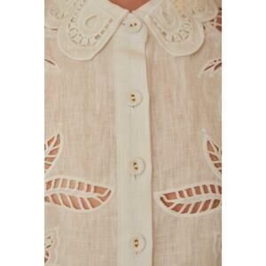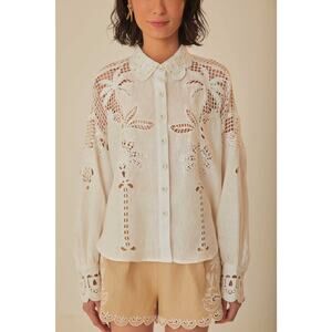 NWOT Farm Rio S White Palms Richelieu Euroflax Premium Linen Shirt Embroidered