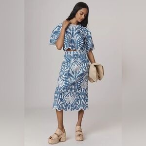 NWOT Farm Rio X Anthropologie Linen Lace Nature Slim Midi Skirt Size Small