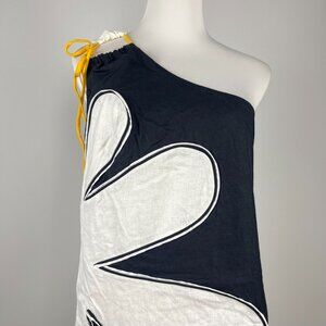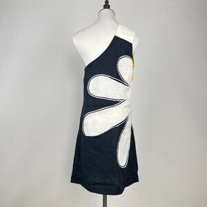 NWOT Farm Rio x Anthropologie One-Shoulder Linen Blend Flower Mini Dress Size LP