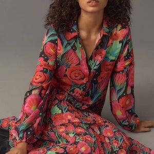 Farm Rio x Anthropologie Pleated Drop Waist Maxi Dress.