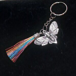 NWOT Fashion Jewelry Silver Tone Butterfly Keychain Rainbow Tassel #15