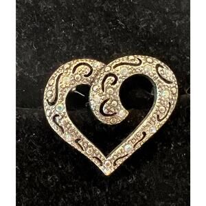 NWOT Faux Marcasite Heart with Aurora Borealis Crystal Rhinestones Brooch Pin