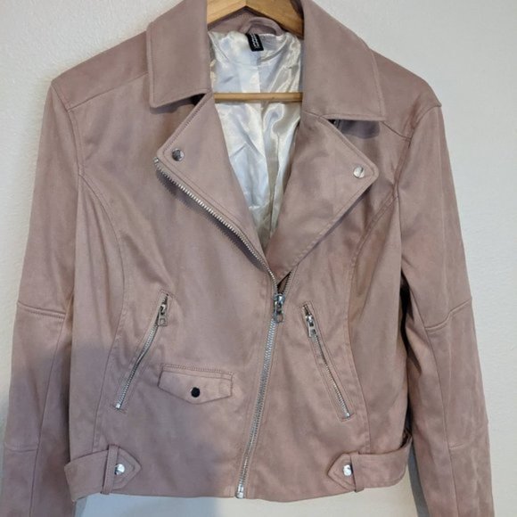 Cute jacket, mauve suede. Moto style, size large. Never worn.H&M