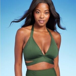 NWOT Faux Wrap Halter Bikini Top - Kona Sol X-Large Dark Green