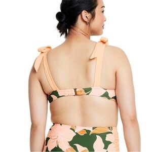 Style a stunning swim look with this Lily Floral Print Underwire Bikini Top from Fe Noel x Target. Made from soft and stretchy fabric, this underwire bralette bikini top is designed with a pretty allover lily floral print in a peach and dark olive color palette. The bikini top features two tie-fastening shoulder straps in solid peach, plus a back hook closure for a secure fit.