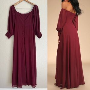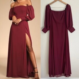 NWOT Feel the Romance Burgundy Off-the-Shoulder Maxi Dress
