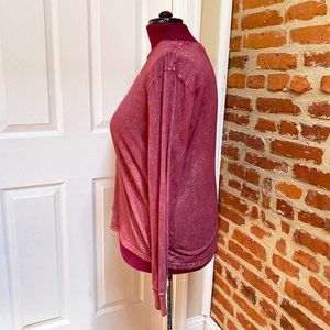NWOT Fifth Sun t-shirt, size XL. Long-sleeve tee in an overdyed & washed-out vintage-look dark red. Silkscreened wildflower image. Wide crew neck. Long sleeves with banded cuffs. Comfortable boxy cut. Machine washable. 100% cotton.