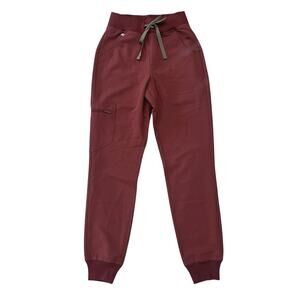 NWOT Figs High Waisted Zamora Jogger Scrub Pant in Dark Cherry Red Size XXS