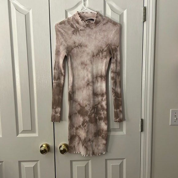 NWOT Final Touch Womens Small Tan Tie Dye Ribbed Dress