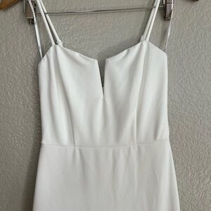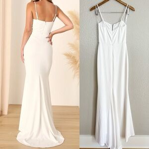 Lulus Finding the One White Mermaid Maxi Dress! Stretchy crepe knit shapes this elegant dress that has slender spaghetti straps, a notched neckline (with a hidden V-bar), and a princess-seamed bodice. A high, fitted waist falls to a figure-flaunting mermaid maxi skirt. Hidden back zipper/clasp.