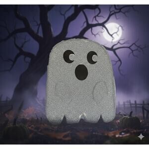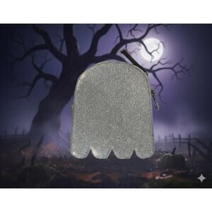 This super cute ghost purse from Fine By Me is a sparkly silver with a black adjustable strap. Zipper closure. Perfect for any stylish Halloween enthusiast! Measures about 9.5” x 7.5”. From a smoke free home.