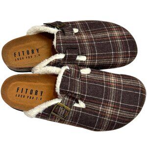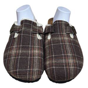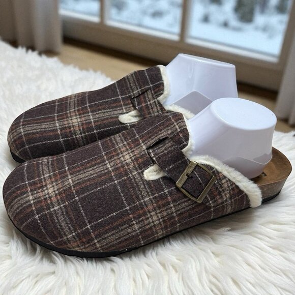NWOT Fitory Plaid Mule Slip Ons Cork Footbed Cozy Cabincore Holiday Women’s 12