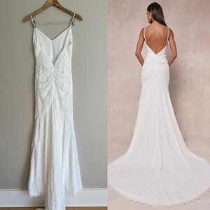 NWOT Flawless Extravagance White Lace Trumpet Hem Maxi Dress