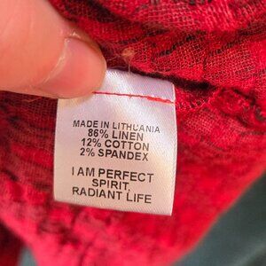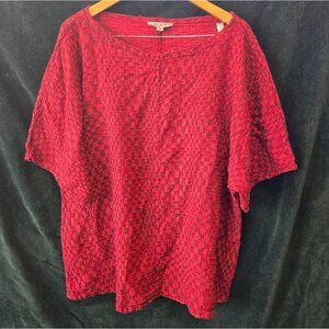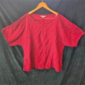 Elegant red top by Flax. Features a textured pattern. Short sleeves and relaxed fit. 24" ptp never been worn