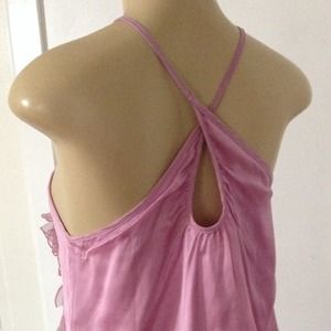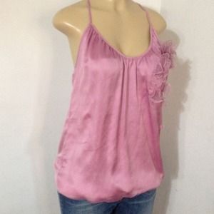100 % silk Mauve top. Would look great with a pair of short shorts, skinny jeans or leggings.