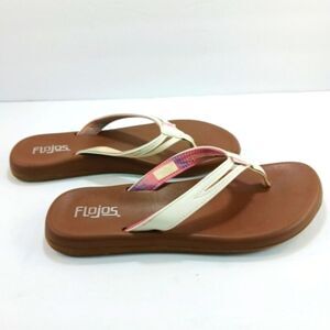 NWOT Flojos Flip Flop Thong Sandal Womans 8. Tan And White/Pink Strap...........
