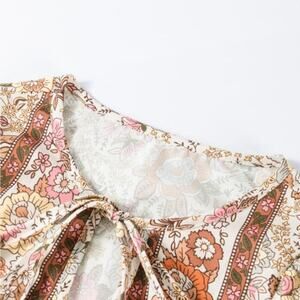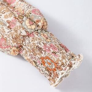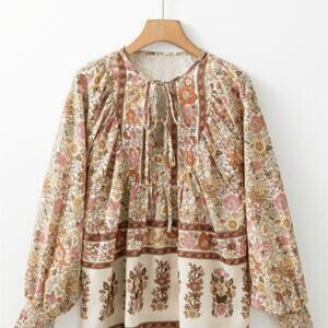 NWOT Floral Boho Women's Peasant Top Poet Blouse Neutral | Size M