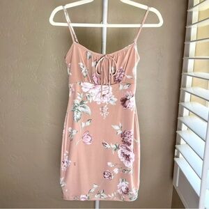 NWOT: Floral Pink Bodycon Mini Dress Size Small Light Pink