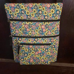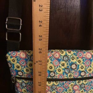 This bag has a long shoulder strap with a slide buckle to make it suitable for you. Has 3 pockets on front and 1 on back, made from heavy quilted material