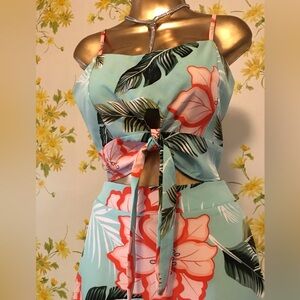 NWOT Floral layered midi skirt and crop top size M