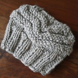 Beautifully knit beanie in gray with charcoal flower. One size fits most.