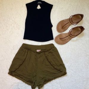 These were an impulse buy because I loved how comfy and cute they were but realized I already had shorts just like them hiding in my summer clothes bin lol. They are new without tags and can be worn out or even as pj shorts! (Brown sandals are being sold in another listing!)