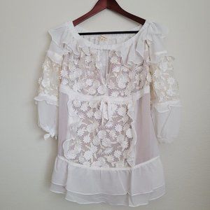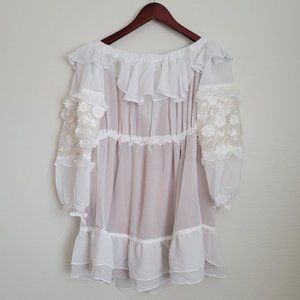 NWOT For Love & Lemons Carolina Off Shoulder Lace Dress White, Size Medium