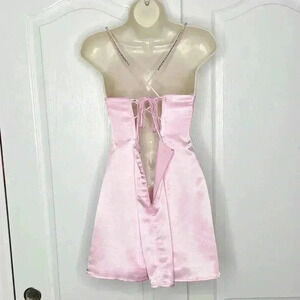 NWOT For Love & Lemons Elora Satin Strappy-Back Mini Pink Dress Size Large