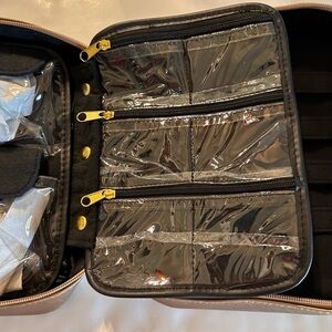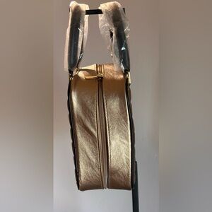 NWOT For Your Eases Only Cosmetic Make- Up Bag Gold Tone Quilted Gold Hardware