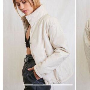 NWOT Forever 21 Beige Neutral Vegan Faux Leather Puffer Jacket Boxy Short Small. In excellent new without tag never worn condition. Zero flaws. On trend and goes with everything.