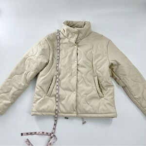 NWOT Forever 21 Beige Neutral Vegan Faux Leather Puffer Jacket Boxy Short S