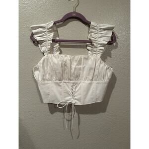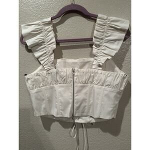 NWOT Forever 21 Cute Ivory Ruffled Sleeveless Crop Top Juniors Sz L