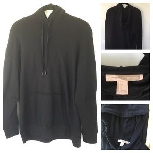 NWOT Forever 21 Frayed Drawstring Hoodie in Black Sweatshirt Fabric with seams at elbows and raw edge detail around hood. Size Small but also fits a women's medium. Please submit reasonable offers via the 'Offer' function. NO negotiating in the comments section. NO trading or offline/alternate site transactions. All items from my closet, in a smoke-free, dog friendly home.