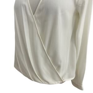 NWOT Forever 21 Off-White Cross Front Faux Surplice Wrap Blouse. Size M. Long sleeves. Chiffon like fabric. This top is an elegant staple that can be dressed up or down for various events. Item is new without tag and never worn, but does have a small spot on the right shoulder as shown in the picture.