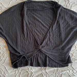 NWOT, never worn. From Forever 21. Rib-knit, long sleeved crop top. Oversized top features open-back design with twisted knot and shoulder strap. Color is black. Size is medium. Paid $22.