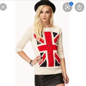 KEEP CALM AND CARRY ON with this NWOT Forever 21 Union Jack sweater. Excellent condition, no flaws. A lovely light knit cream sweater representing the UK. Looks great paired with jeans and some flats. Offers Welcome!
