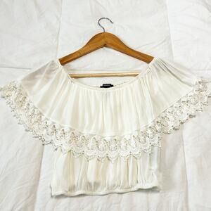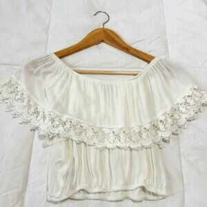 NWOT Forever 21 White Off-Shoulder Crop Top Small Lace Trim Boho Peasant Style