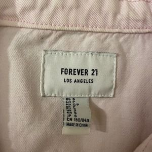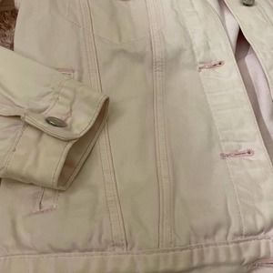 NWOT Forever 21 white and pink Jean Jacket. This chic and trendy piece is the perfect addition to your closet! Size small but fits loose. White with pink hues. Perfect condition!