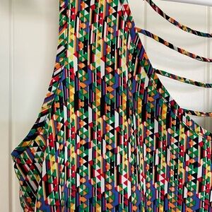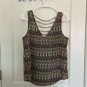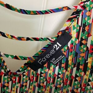 Women’s Forever 21 tank top. Tank top is multicolored with a triangular pattern. Back has multiple straps as decoration. Size small. Smoke free home!