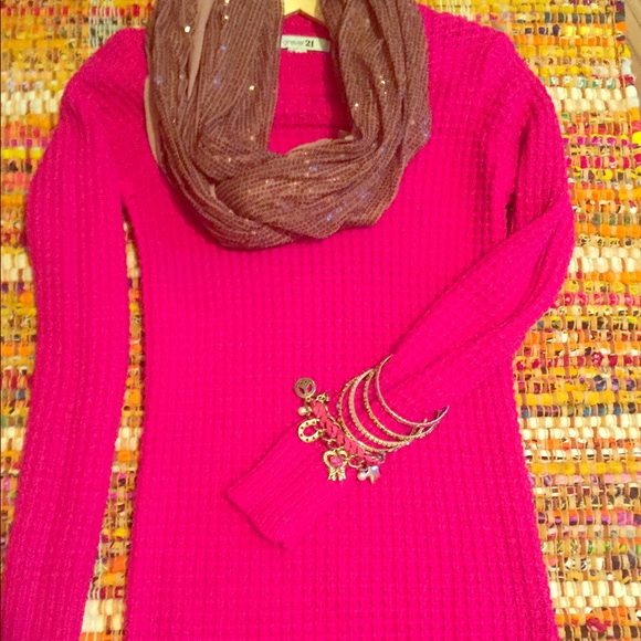 Selling this never worn Forever21 sweater in magenta pink. Size small. Very comfortable, soft and warm. Long enough to wear with leggings. Make offer. Bundle for a discount!